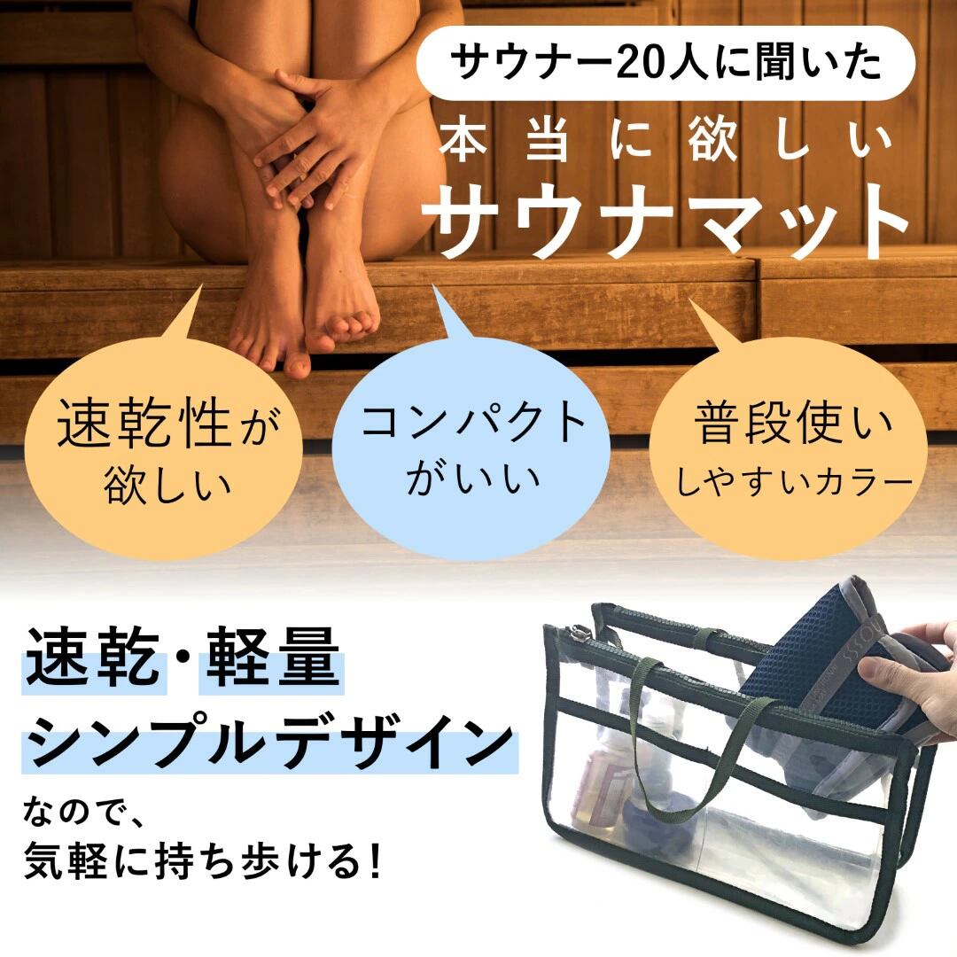 【ダブルメッシュ素材】「コンパクトさ・速乾性」を叶えるために、クッション性のあるダブルメッシュ素材を採用しています。この素材は丈夫で耐久性があり、サウナでの使用に適しています。「程よく中身が見えない」のでプライバシーも守られます。また、サウナハットやTシャツ、下着まで入る大容量サイズです!