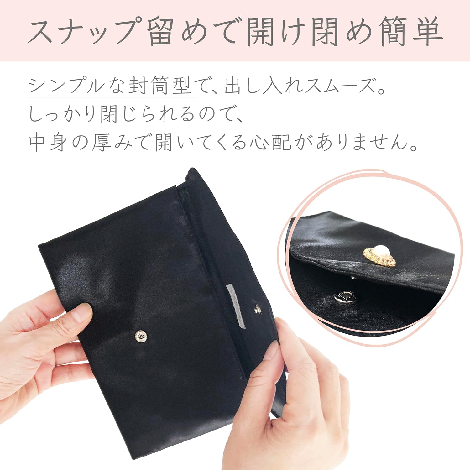 RAKUSE (ラクセ) ふくさ (サテン生地/ブラック) 袱紗 慶弔両用 冠婚葬祭 封筒形状 (スナップ留め付/薄型)