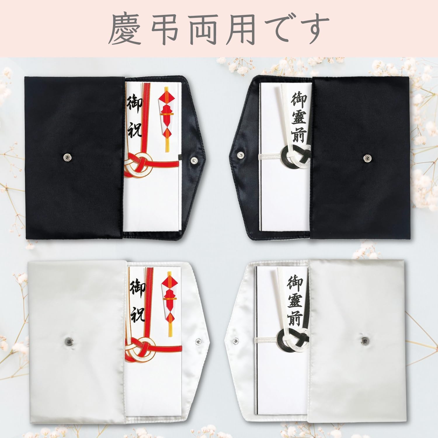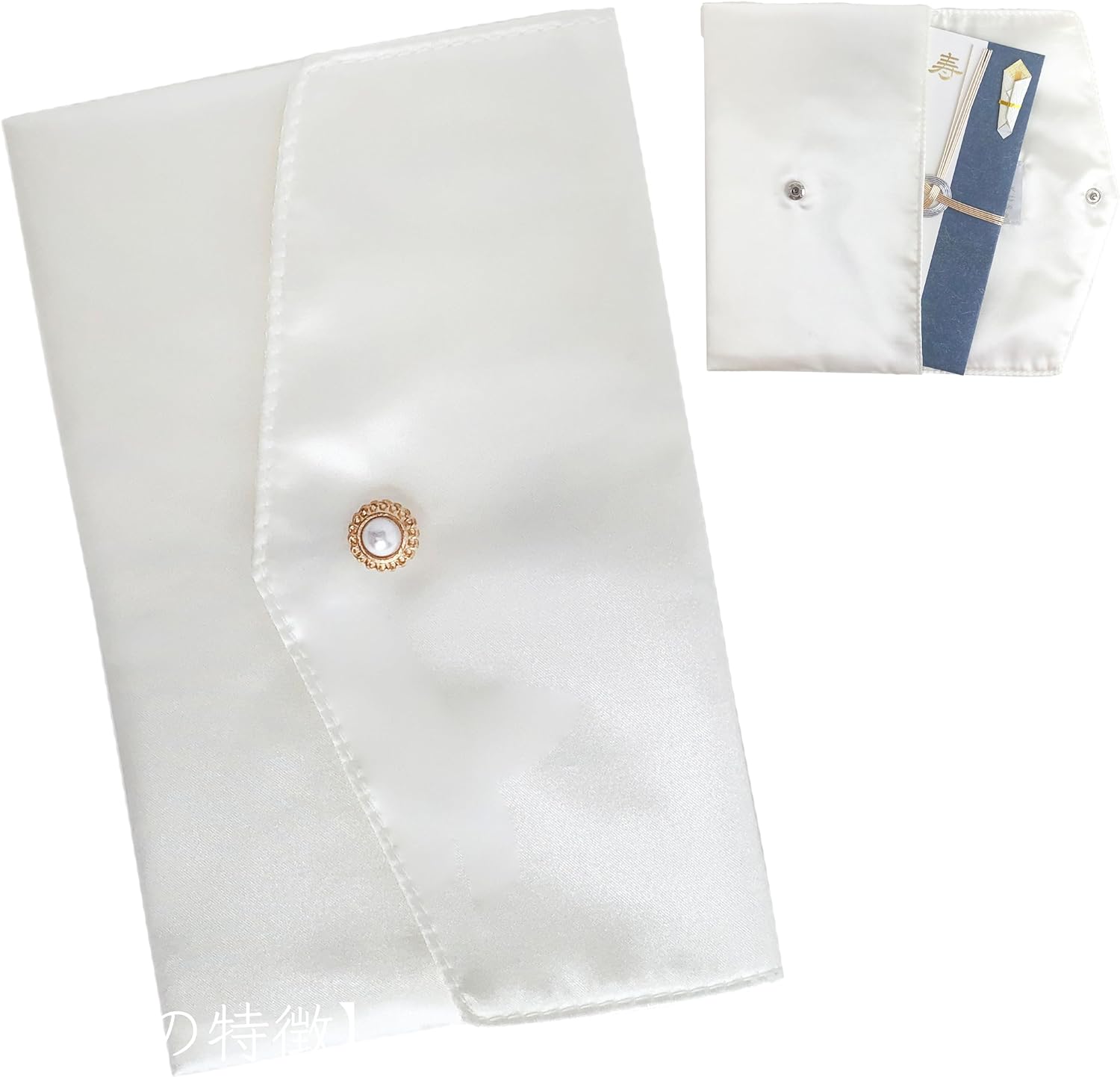 RAKUSE (ラクセ) ふくさ (サテン生地/ホワイト) 袱紗 慶弔両用 冠婚葬祭 封筒形状 (スナップ留め付/薄型)