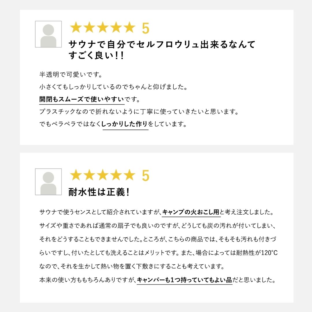 オレンジ サウナ用 セルフロウリュ 扇子 (サウナ用/プラスチック製 / (耐熱 120℃ / 防水/紐付き / 日本製)