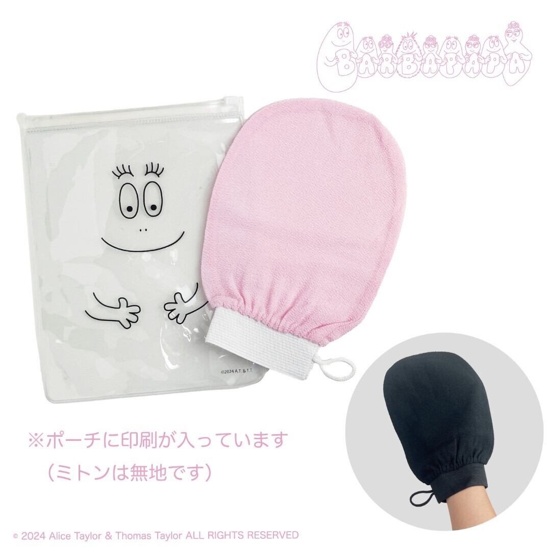 【おまけ付き】バーバパパ あかすり 垢すり ミトン 角質除去 体臭予防 ボディタオル アカスリ 韓国式あかすり 男女共用 角質取り ポーチ付き (ブラック)