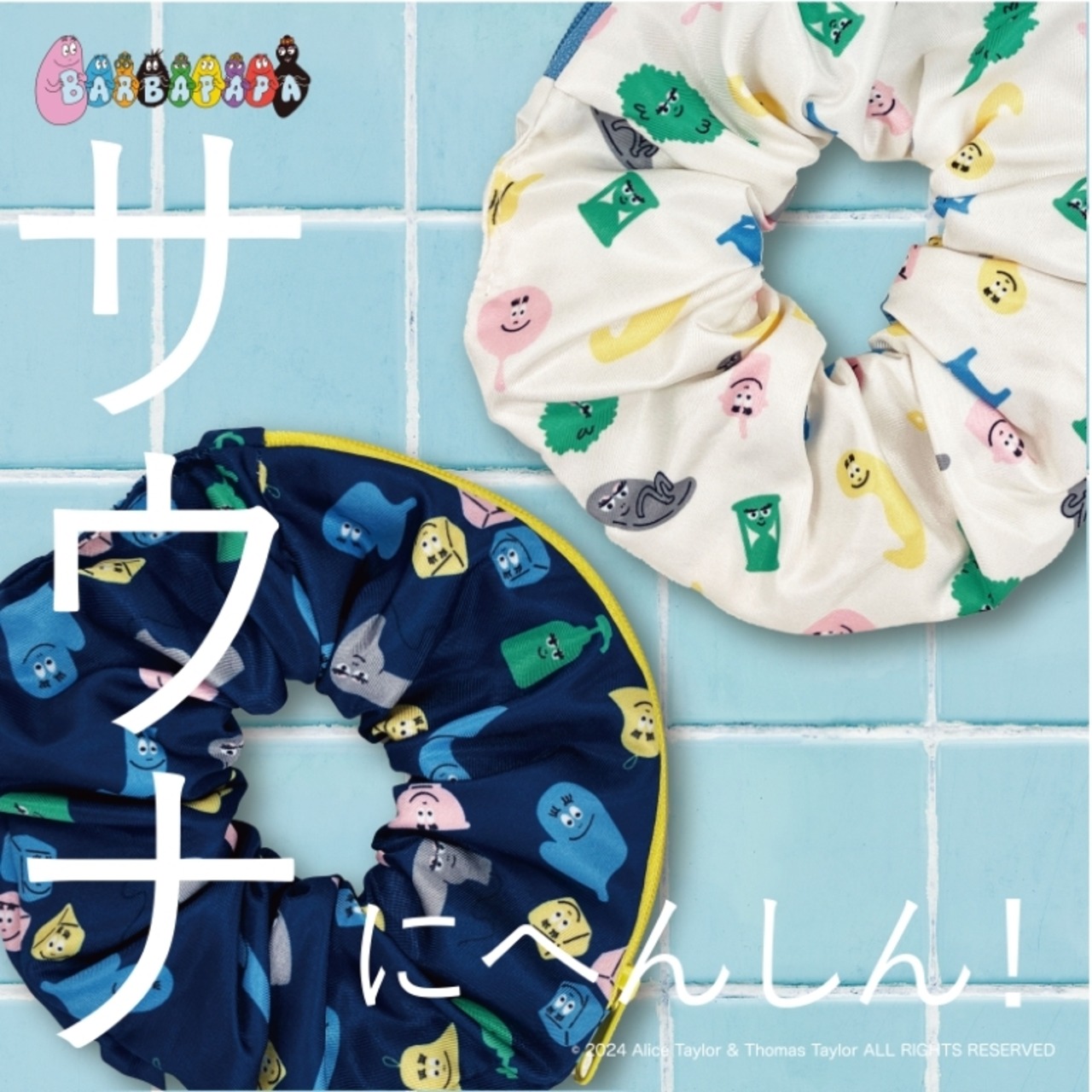 キャラクター柄のかわいい2WAYシュシュ:フロントにはバーバパパのキャラクターが描かれた可愛らしいデザインです。